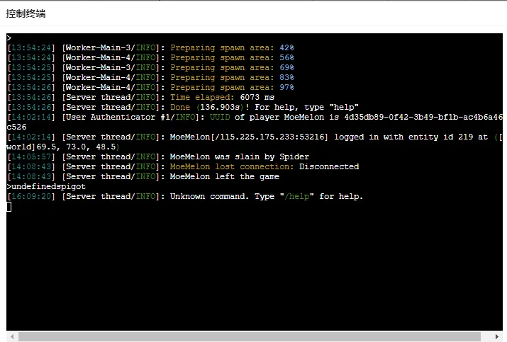 请提前安装好可以安装spigot插件的预设!并且启动成功一次服务器